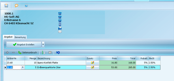 Ihre Kunden bestellen bei Ihnen Apéro-Gebäcke oder eine Hochzeitstorte. Alles wichtige wurde besprochen und der Kunde möchte nun einen Kostenvoranschlag hierfür.